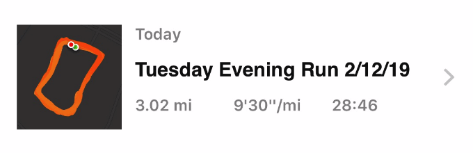 Felt pretty good today and ran pretty quick considering I traveled 10 yesterday. 3 miles @ 9 min 30 second pace.