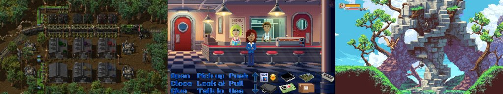 *From left to right: Factorio, Thimbleweed Park, Owlboy