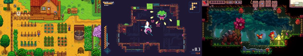 *From left to right: Stardew Valley, ScourgeBringer, Eagle Island