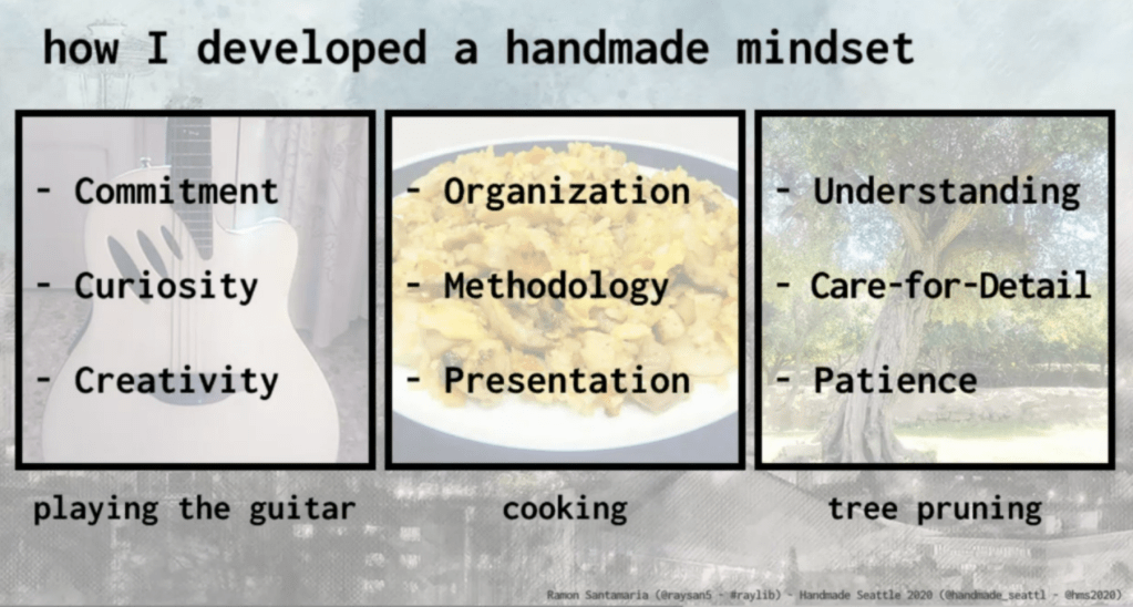 All of these talks were recorded and will be available soon at: https://www.handmade-seattle.com/